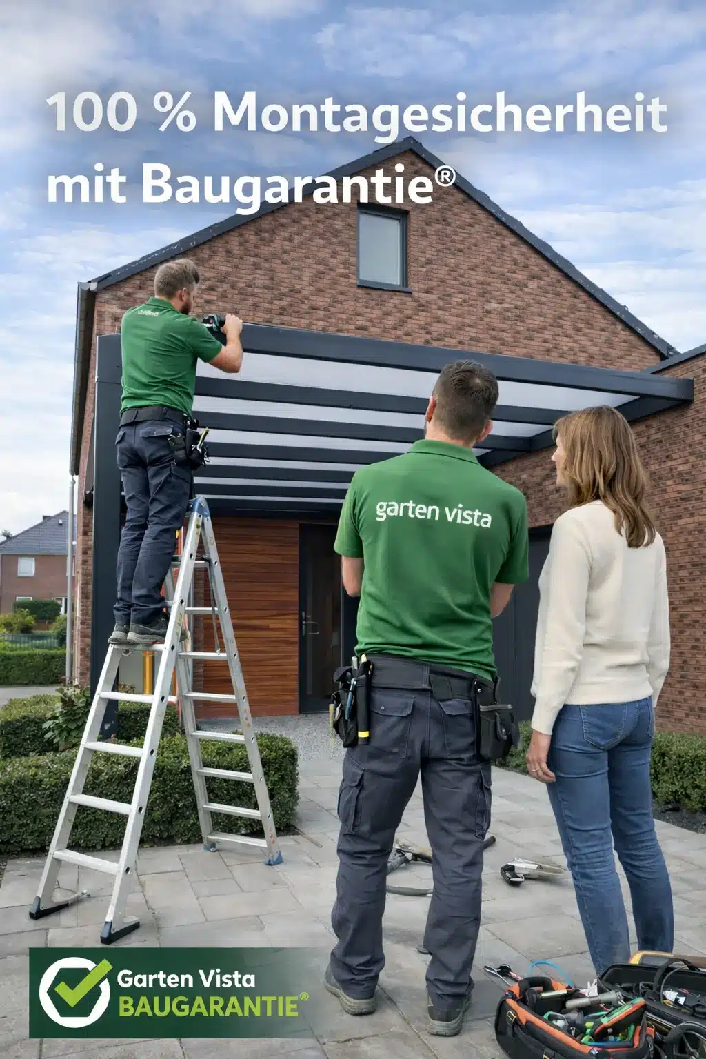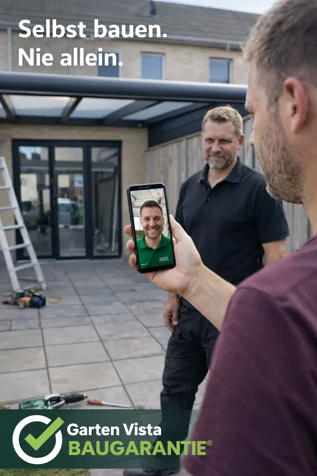 Bei anderen Anbietern endet der Service an der Haustür. Bei uns beginnt er dort erst. Mit der Garten Vista Baugarantie® versprechen wir Ihnen nicht nur Materialien in Spitzenqualität – wir garantieren, dass Ihr Projekt gelingt. Ohne Stress. Ohne Aufwand.