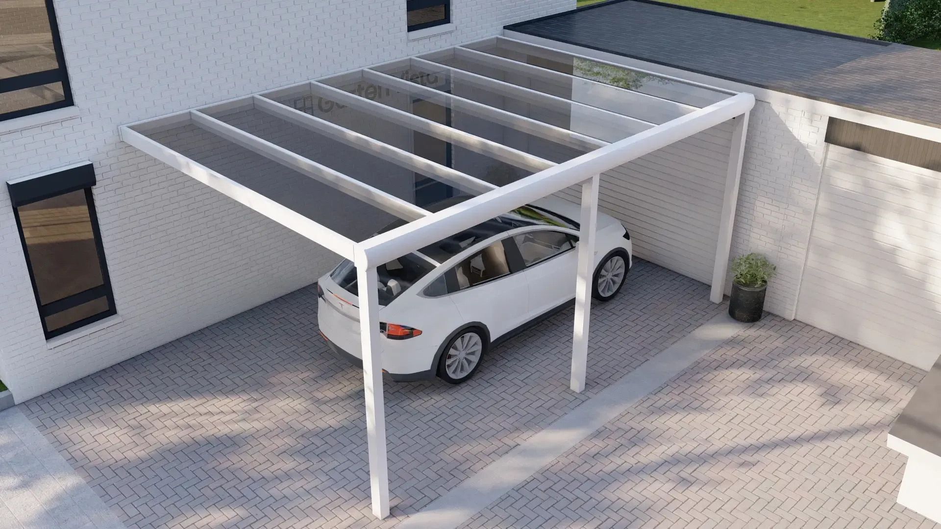 Der Garten Vista Glas-Carport bietet robusten und stilvollen Schutz für Ihr Auto, Ihren Wohnwagen oder Ihr Boot. Gefertigt aus hochwertigem 6063-T6-Aluminium, schützt er Ihr Fahrzeug zuverlässig vor Regen, Hagel, Schnee und dem Ausbleichen durch UV-Strahlen. Gestalten Sie Ihren Carport individuell, indem Sie die perfekte Größe, Rahmenfarbe und Dacheindeckung aus Verbundsicherheitsglas wählen, die zur Ästhetik Ihres Grundstücks passt.