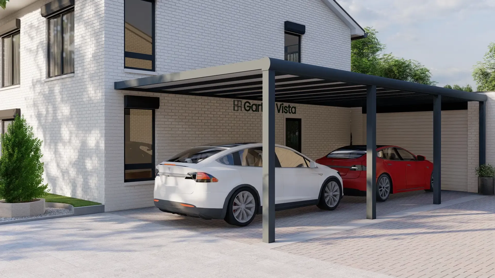 Der Garten Vista Polycarbonat-Carport bietet robusten und stilvollen Schutz für Ihr Auto, Ihren Wohnwagen oder Ihr Boot. Gefertigt aus hochwertigem 6063-T6-Aluminium, schützt er Ihr Fahrzeug zuverlässig vor Regen, Hagel, Schnee und dem Ausbleichen durch UV-Strahlen. Gestalten Sie Ihren Carport individuell, indem Sie die perfekte Größe, Rahmenfarbe und Dacheindeckung aus Polycarbonat wählen, die zur Ästhetik Ihres Grundstücks passt.