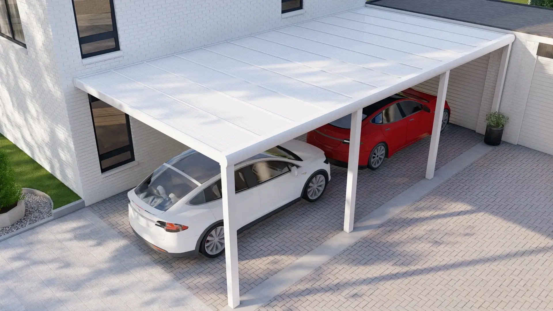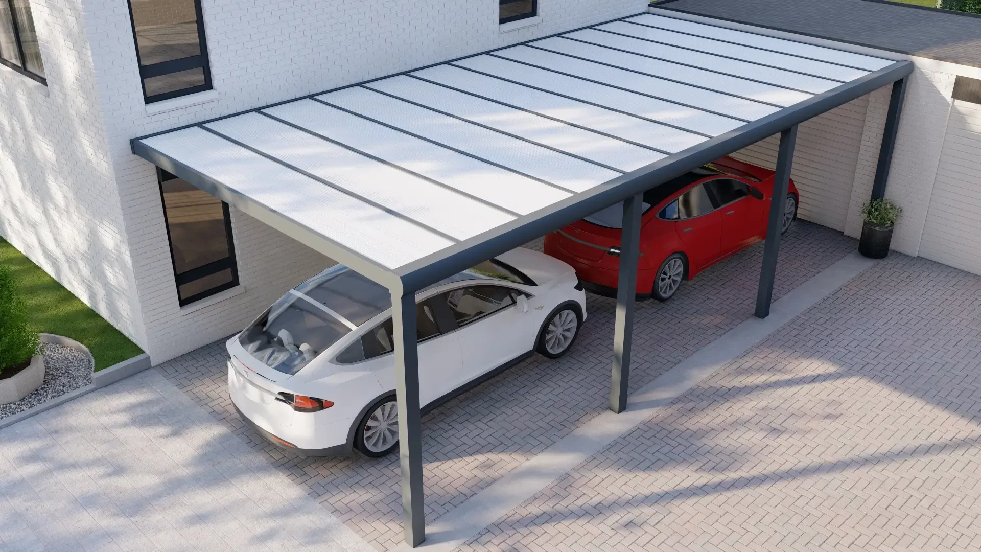 Schützen Sie Ihr Fahrzeug mit unserem hochwertigen Aluminium-Carport, der für eine lange Lebensdauer gebaut ist. Ausgestattet mit einem langlebigen Polycarbonat-Stegplattendach – wählen Sie Klar für maximales Licht oder Opal für weichen, diffusen Schatten. Eine stilvolle und praktische Lösung, um Ihr Auto vor Witterungseinflüssen zu schützen, anpassbar in Größe und Farbe, um perfekt zu Ihrem Zuhause zu passen.