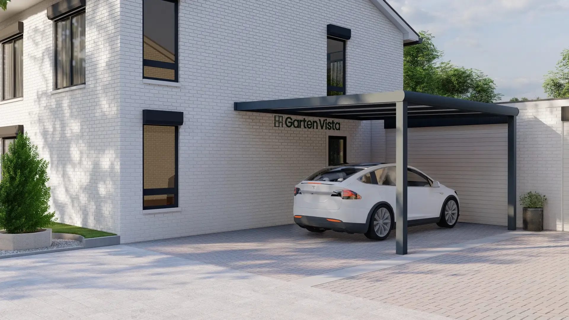 Der Garten Vista Polycarbonat-Carport bietet robusten und stilvollen Schutz für Ihr Auto, Ihren Wohnwagen oder Ihr Boot. Gefertigt aus hochwertigem 6063-T6-Aluminium, schützt er Ihr Fahrzeug zuverlässig vor Regen, Hagel, Schnee und dem Ausbleichen durch UV-Strahlen. Gestalten Sie Ihren Carport individuell, indem Sie die perfekte Größe, Rahmenfarbe und Dacheindeckung aus Polycarbonat wählen, die zur Ästhetik Ihres Grundstücks passt.    Konstruktion in Spitzenqualität Unsere Carports verfügen über ein einzigartiges, doppelwandiges XL-Rinnenprofil für überlegene Stabilität und eine effiziente Wasserableitung. Die gesamte Konstruktion besteht aus Premium-Aluminium mit einer langlebigen Qualicoat-Pulverbeschichtung, die Wartungsarmut und Korrosionsbeständigkeit garantiert.    Dieses Qualitätsversprechen wird durch unsere umfassende 10-Jahres-Garantie untermauert. Einfache Selbstmontage Ihr Garten Vista Carport wird als kompletter All-in-One-Bausatz geliefert, der für eine unkomplizierte Selbstmontage konzipiert ist. Mit unserer detaillierten Schritt-für-Schritt-Anleitung und den online verfügbaren Montagevideos erhalten Sie die Unterstützung, die Sie benötigen, um Ihren neuen Carport selbstbewusst aufzubauen. Der Bausatz enthält alle erforderlichen Materialien, von Schrauben und Dichtmittel bis hin zu einem Laubfang für das integrierte Fallrohr.    Dieser Carport-Bausatz enthält u. a.:
