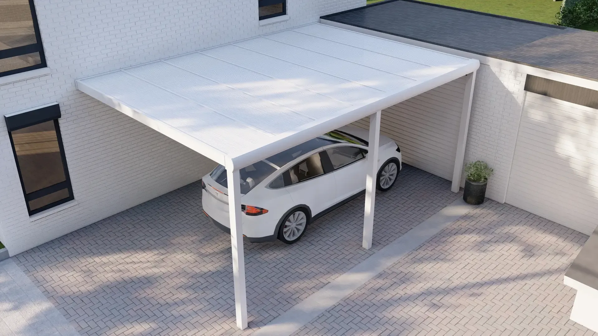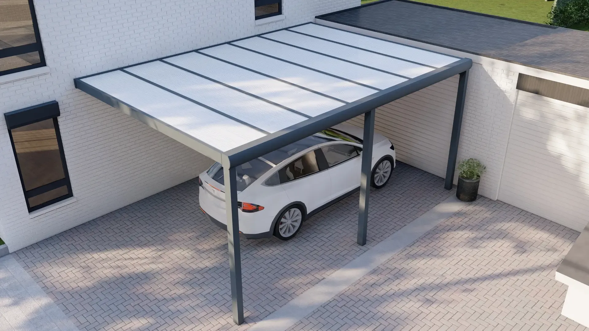 Schützen Sie Ihr Fahrzeug mit unserem hochwertigen Aluminium-Carport, der für eine lange Lebensdauer gebaut ist. Ausgestattet mit einem langlebigen Polycarbonat-Stegplattendach – wählen Sie Klar für maximales Licht oder Opal für weichen, diffusen Schatten. Eine stilvolle und praktische Lösung, um Ihr Auto vor Witterungseinflüssen zu schützen, anpassbar in Größe und Farbe, um perfekt zu Ihrem Zuhause zu passen.