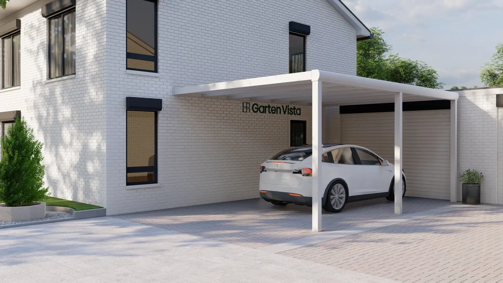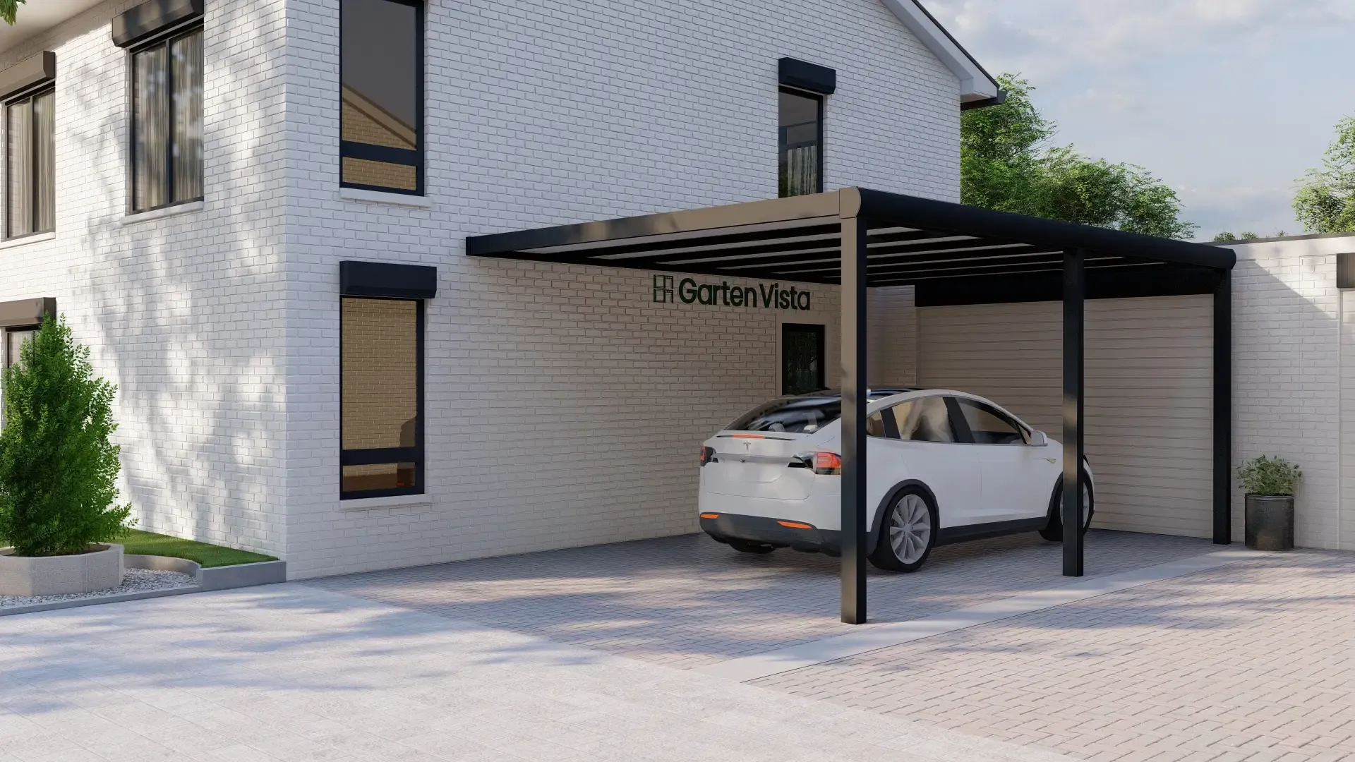 Der Garten Vista Polycarbonat-Carport bietet robusten und stilvollen Schutz für Ihr Auto, Ihren Wohnwagen oder Ihr Boot. Gefertigt aus hochwertigem 6063-T6-Aluminium, schützt er Ihr Fahrzeug zuverlässig vor Regen, Hagel, Schnee und dem Ausbleichen durch UV-Strahlen. Gestalten Sie Ihren Carport individuell, indem Sie die perfekte Größe, Rahmenfarbe und Dacheindeckung aus Polycarbonat wählen, die zur Ästhetik Ihres Grundstücks passt.