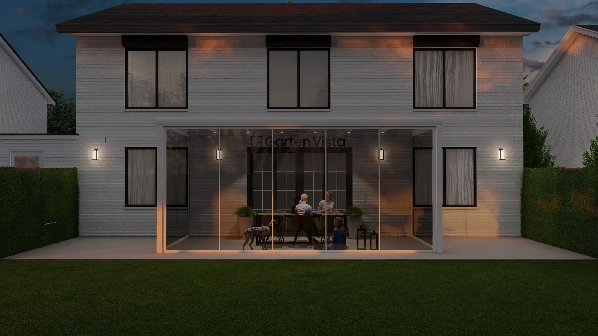 Erlebe die perfekte Kombination aus Stil, Technik und Komfort – mit dem 5-Schienen Glasschiebetür-System von Garten Vista.