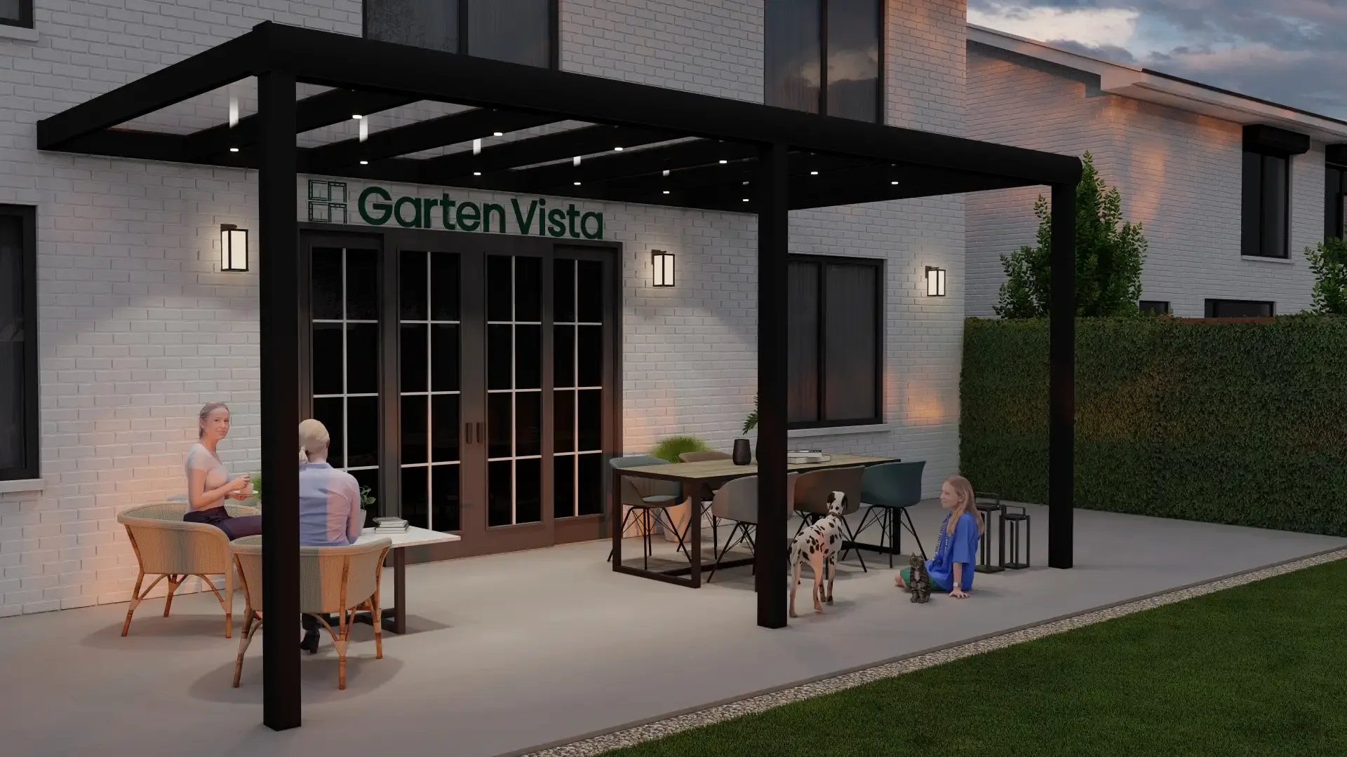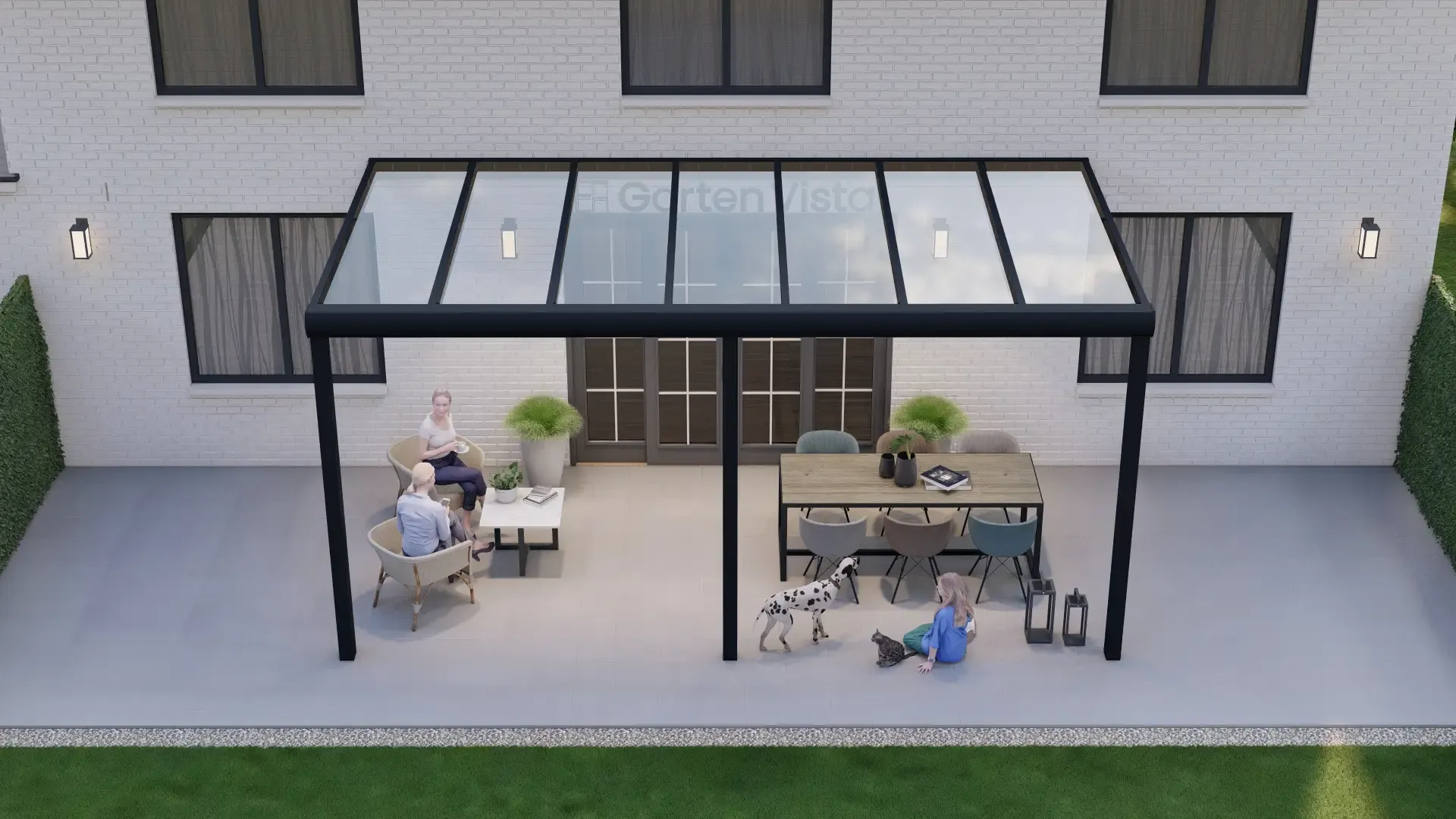 Dank eines clever konzipierten modularen Systems ist es möglich, die Überdachung später zu einem luxuriösen Gartenzimmer zu erweitern. Schließen Sie die Seite (teilweise) oder installieren Sie Glasschiebewände, damit Sie Ihren Garten auch an kühleren Tagen und Abenden herrlich genießen können. Und das alles Schritt für Schritt. Beginnen Sie mit einer Überdachung und enden Sie mit einem kompletten Gartenzimmer!Dieser Bausatz für eine Terrassenüberdachung zur Selbstmontage enthält u. a.: