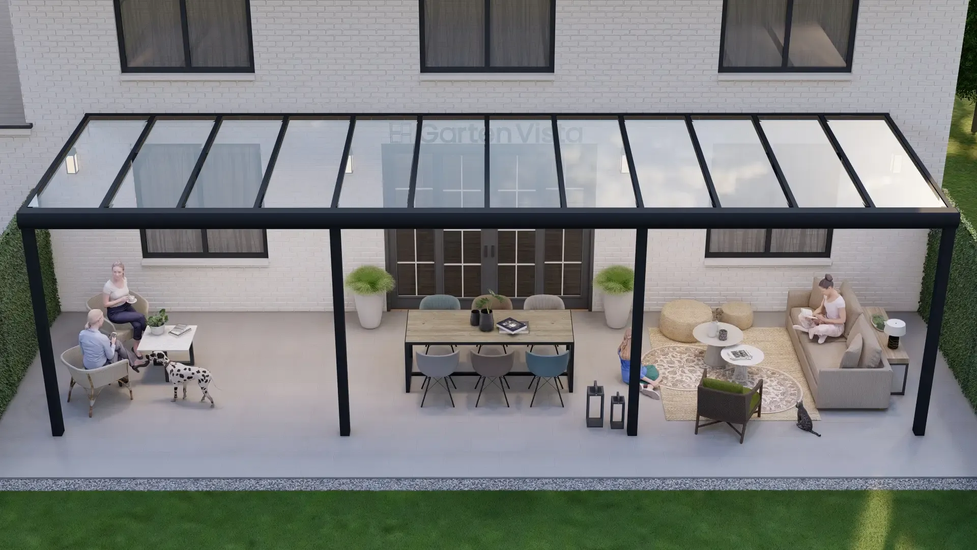 Glas-Überdachung Plus – 12m x 4m – Mattschwarz