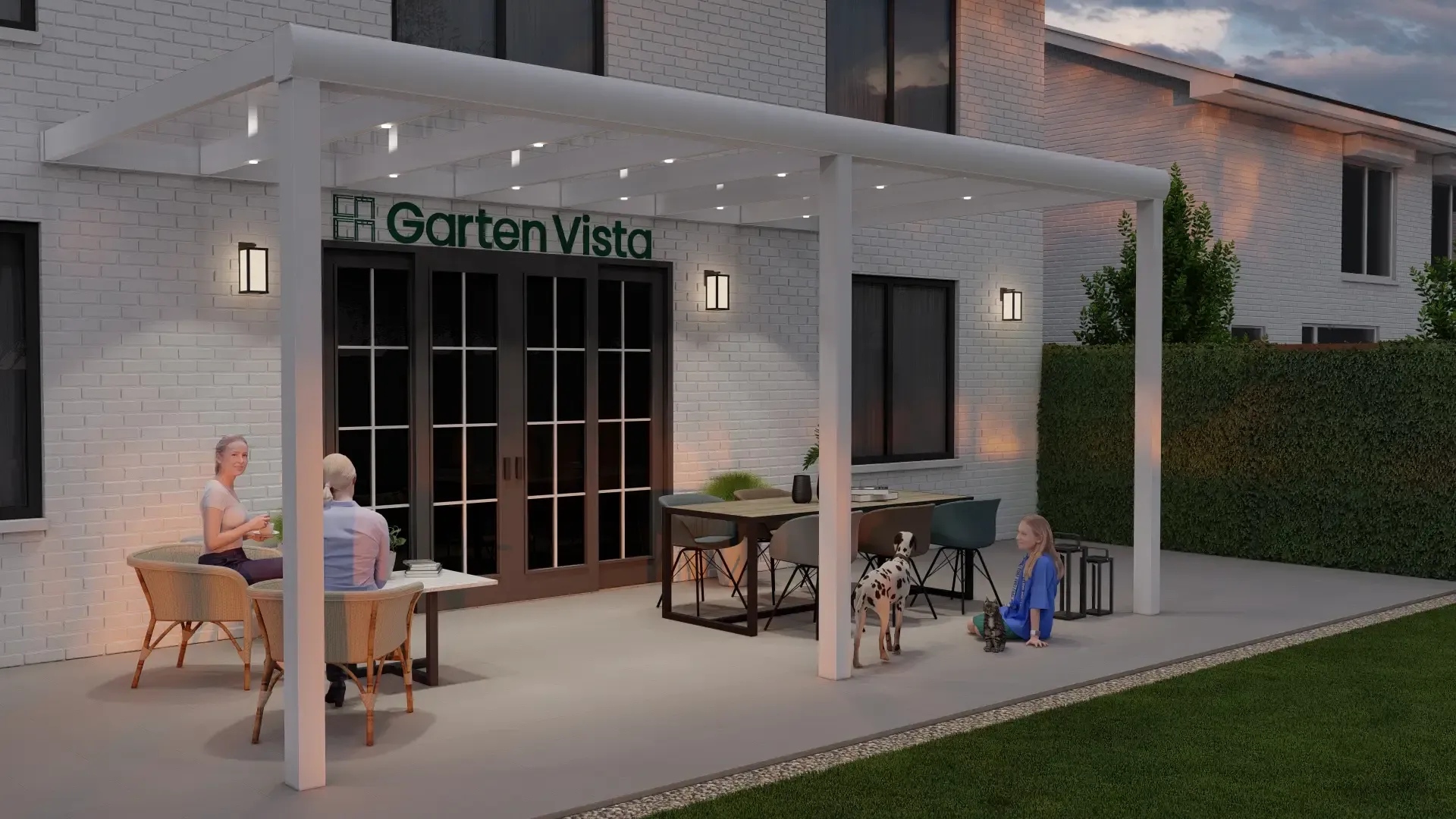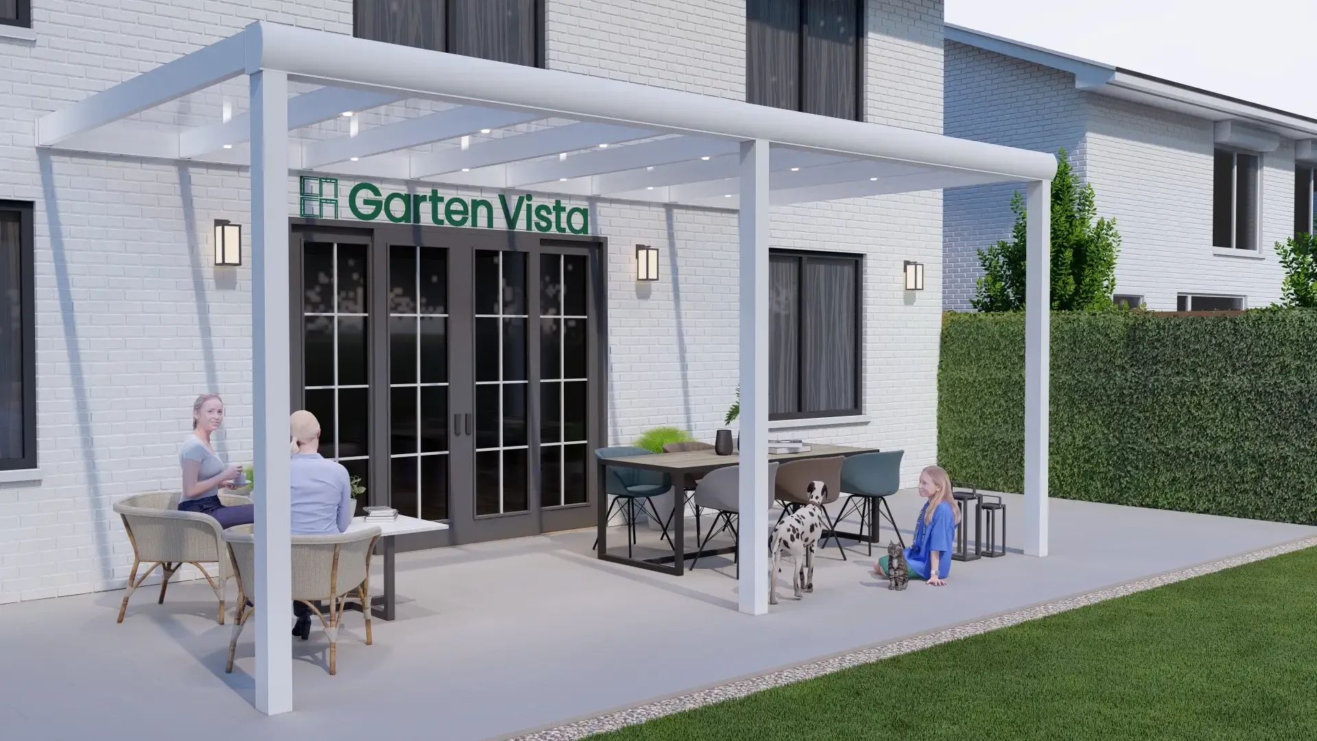 Dank eines clever konzipierten modularen Systems ist es möglich, die Überdachung später zu einem luxuriösen Gartenzimmer zu erweitern. Schließen Sie die Seite (teilweise) oder installieren Sie Glasschiebewände, damit Sie Ihren Garten auch an kühleren Tagen und Abenden herrlich genießen können. Und das alles Schritt für Schritt. Beginnen Sie mit einer Überdachung und enden Sie mit einem kompletten Gartenzimmer!
